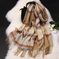 100% Pure Wool Scarf Women Luxury Shawls Wraps Checked Pashmina Foulard Femme Winter Warm Plaid Cashmere Scarves Femme Echarpe
