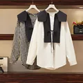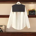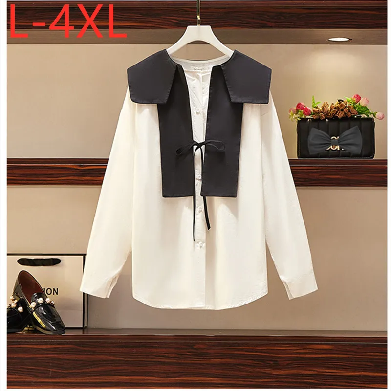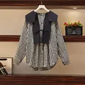 L-4XL Fit Weight 50-100KG 2021 New Autumn Plus Size Tops For Women Long Sleeves Demountable Vest Contrast Color Casual T-Shirts