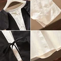 Best savings for L-4XL Fit Weight 50-100KG 2021 New Autumn Plus Size Tops For Women Long Sleeves Demountable Vest Contrast Color Casual T-Shirts