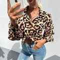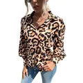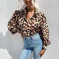 Best 2021 Autumn New Fashion European and American Style Long-sleeved Leopard Print Buttoned Lapel Shirt Blouses Woman Tops Femme and You will save 55% or US $17.48 today