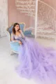 Costomer Scores and Reviews for Lavender Tulle Dress Light Purple Dress For Photoshoot See Through Floral Print Evening Dresses With Train Flower Girl Dresses
